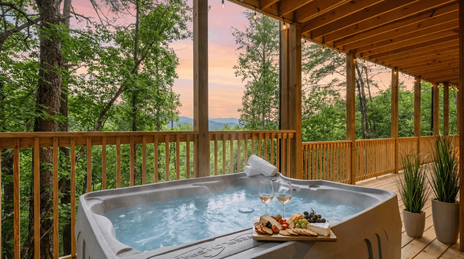 This cabin offers the perfect hot tub experience, where stress fades away.